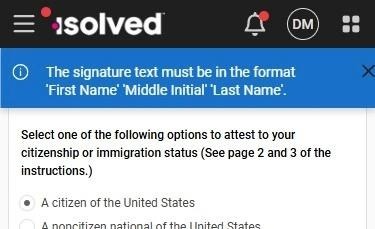 "The signature text must be in the format 'First Name' 'Middle Initial' 'Last Name'."