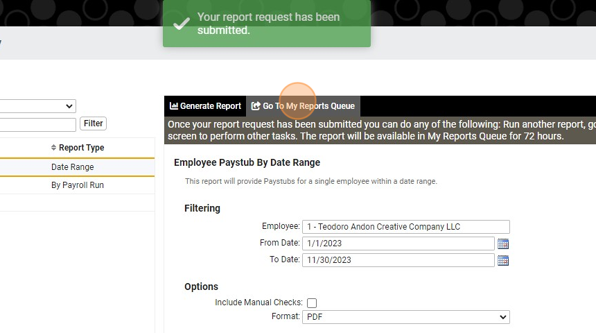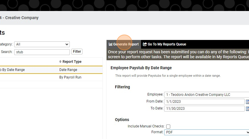 If you need to print multiple pay stubs at once, you can use the Employee Paystub By Date Range report. Here's how: