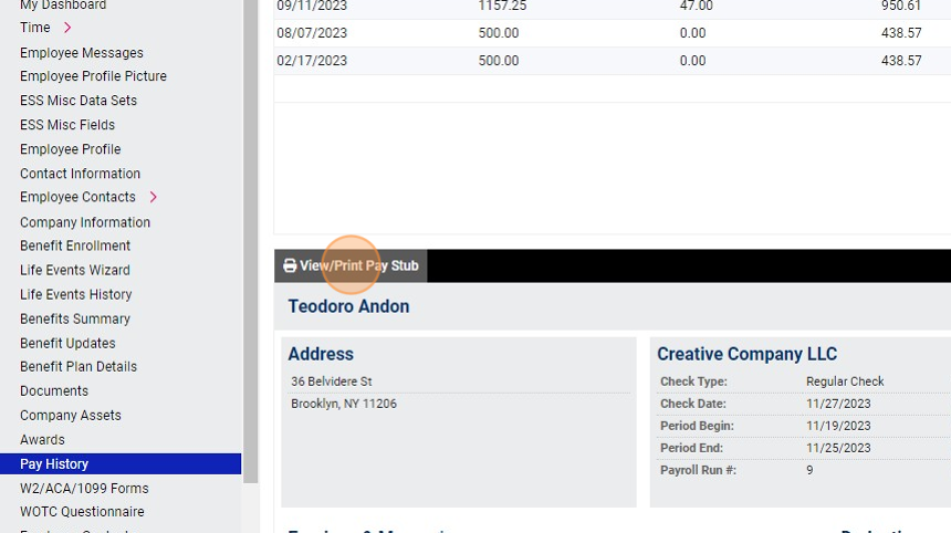 7. The pay stub will open in a new tab in the browser. You will be able to print it or save as PDF.