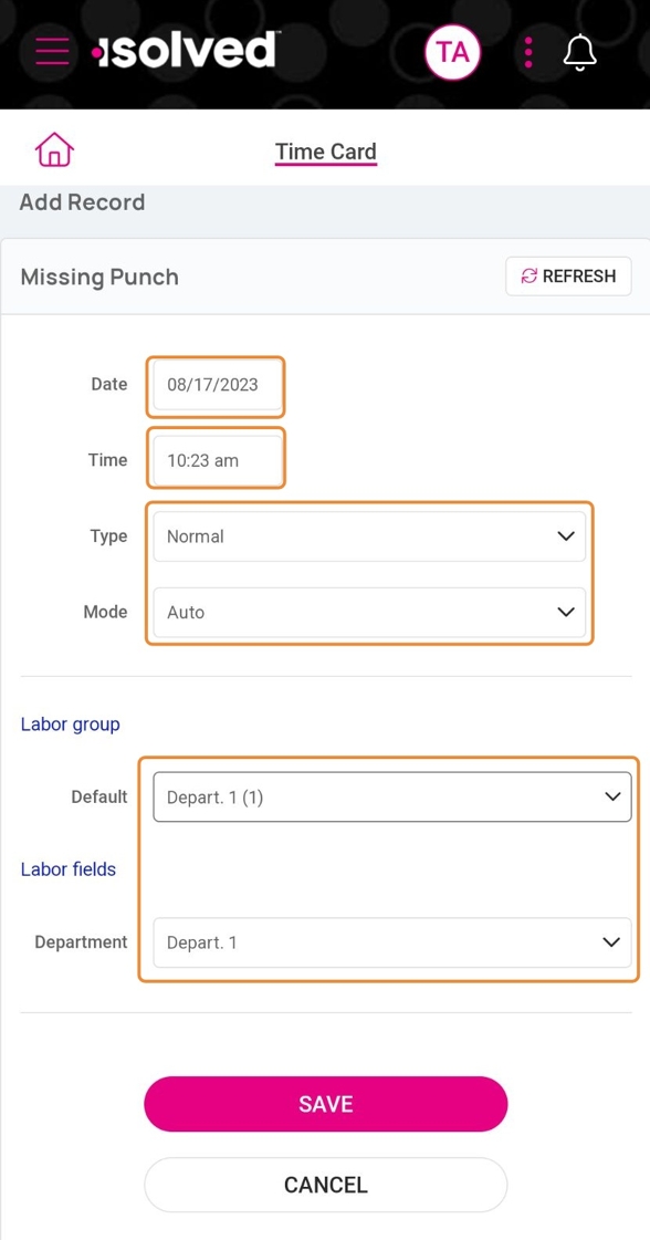 3. Enter the date and time of the punch and other information collected when punching (if any)